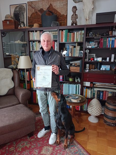 Dieses Wochenende war unser Agility-Wochenende mit Harry MacNelly in Oberammergau. Unser „Mac“ war vor 20 Jahren maßgeblich daran beteiligt, dass wir unseren Verein überhaupt gründen konnten. Weil er zu unserem Sommerfest nicht kommen konnte, haben wir ihm heute unser Vereins-T-Shirt und die Jubiläumsflasche übergeben. Es war so ein schönes Wochenende. Wir hatten so viel Spaß. Wir haben nicht nur unsere Hunde toll trainiert, sondern auch unsere Lachmuskeln. Mittlerweile übernachten immer mehr von unserenLeuten auch im Hotel und das Seminar ist sowas wie ein kleiner Urlaub mit Hund geworden. Wir freuen uns schon auf nächstes Jahr.